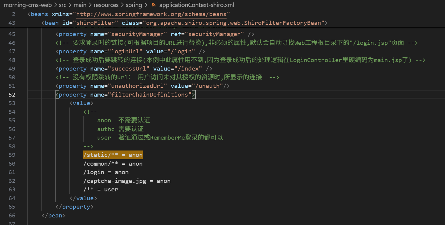 The project uses an outdated Apache Shiro configuration which allows anonymous access to `/static/**` paths.