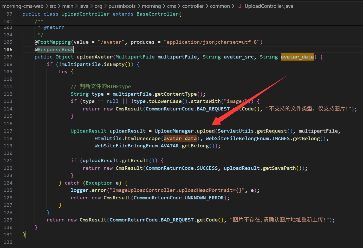 There is a sensitive interface /uploads/avatar, which uses UploadManager.upload to parse the files uploaded by the user.